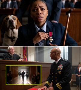 Gasps rippled through the gallery. The woman, Captain Donovan, didn’t argue. She leaned heavily on her wooden cane, her service dog Scout growling low at her side. With a trembling hand, she reached up to unpin the medal she had earned crawling through enemy fire to save her squad.