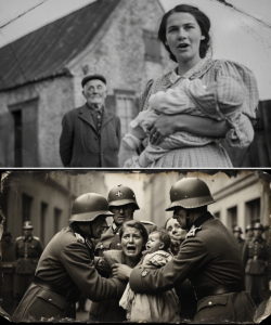 At exactly 4:00 AM on December 12, 1943, in the bone-chilling cold of the barracks, Elena gave birth to a baby boy. There was no midwife, no anesthesia—only the calloused hands of Clara and Martha to guide her. The child entered the world with a weak but spirited cry. Elena named him Julian, after his missing father. For three short days, she nurtured him with absolute devotion and terror, hiding him under piles of rags whenever guards passed by. But silence could not protect them forever. On the third day, Kraus marched in and tore the infant from Elena’s arms with terrifying indifference. Julian was taken to become a “Child of the Reich,” destined to be raised in a German family to erase every trace of his French heritage.