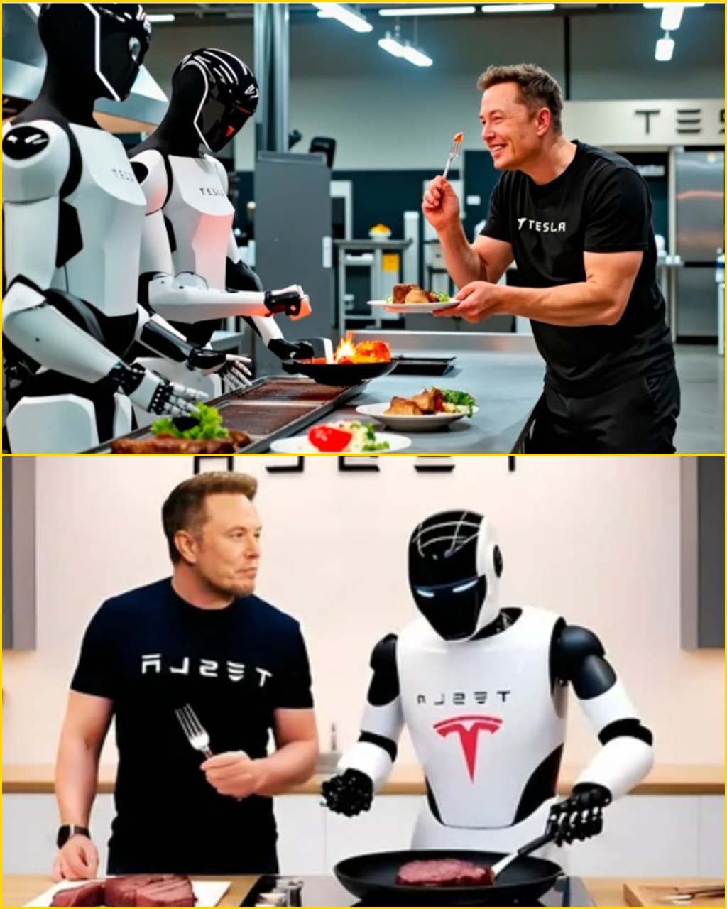 Inside the restaurant, there are no human waiters, no buzzing chaos of servers balancing trays or shouting orders across the kitchen. Instead, sleek, autonomous machines glide between tables, trays hover silently on magnetic tracks, and every order is processed by a Tesla-designed AI that predicts your preferences before you even open the menu.