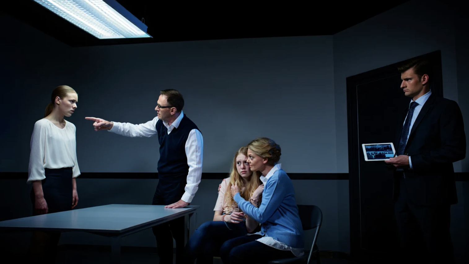 We were in a small side room inside the police precinct, the kind of room designed to hold secrets that people are too ashamed to say out loud in front of strangers. The walls were the color of old teeth. The fluorescent lights buzzed overhead with a persistent, insect-like whine that made my skin crawl. Everything smelled like burned coffee, antiseptic, and the thin metallic scent of fear.