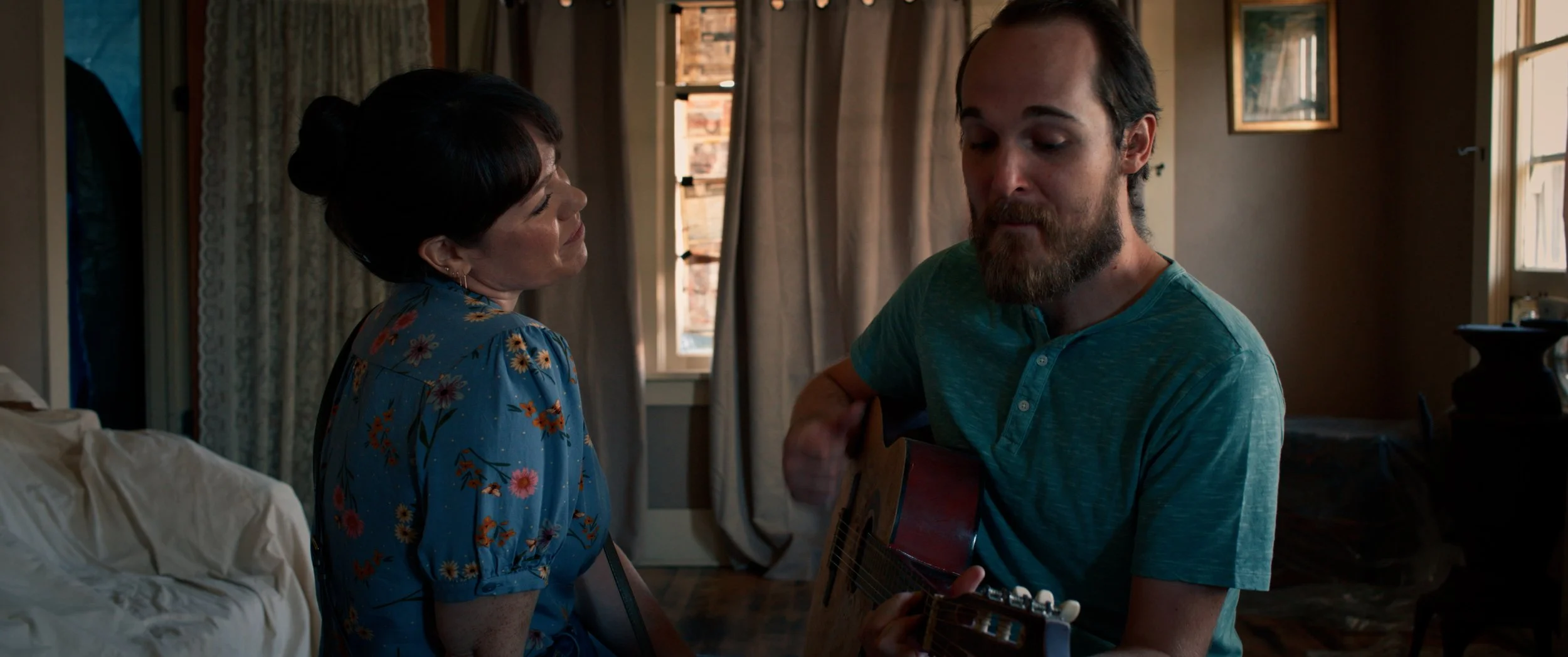 Humor is subjective, and unfortunately, the humor of “Forever Home” just never landed for us. But if exaggerated accents, manic energy, and aggressive levels of quirk tickle your funnybone, your experience with “Forever Home” might be very different than ours. The humor of Oliver’s film can best be distilled through the characterization of Max (Cody Hunt), who is Jules’ (Sammie Lideen) eccentric brother. He shows up ten hours after they’ve moved into their new home (he’s unpredictable!), having discovered their location by threatening their realtor (he’s wacky!), and within minutes is soaking his bare feet in their kitchen sink while recounting his tale of being fired from his job in Mexico and needing a place to crash (he’s silly!) If, like his sister and his brother-in-law Ryan (Drew Leatham), you find yourself chuckling and rolling your eyes at good ole Max and his antics, this may be your film. We found ourselves cringing or smiling uncomfortably, wondering if we were missing the joke.