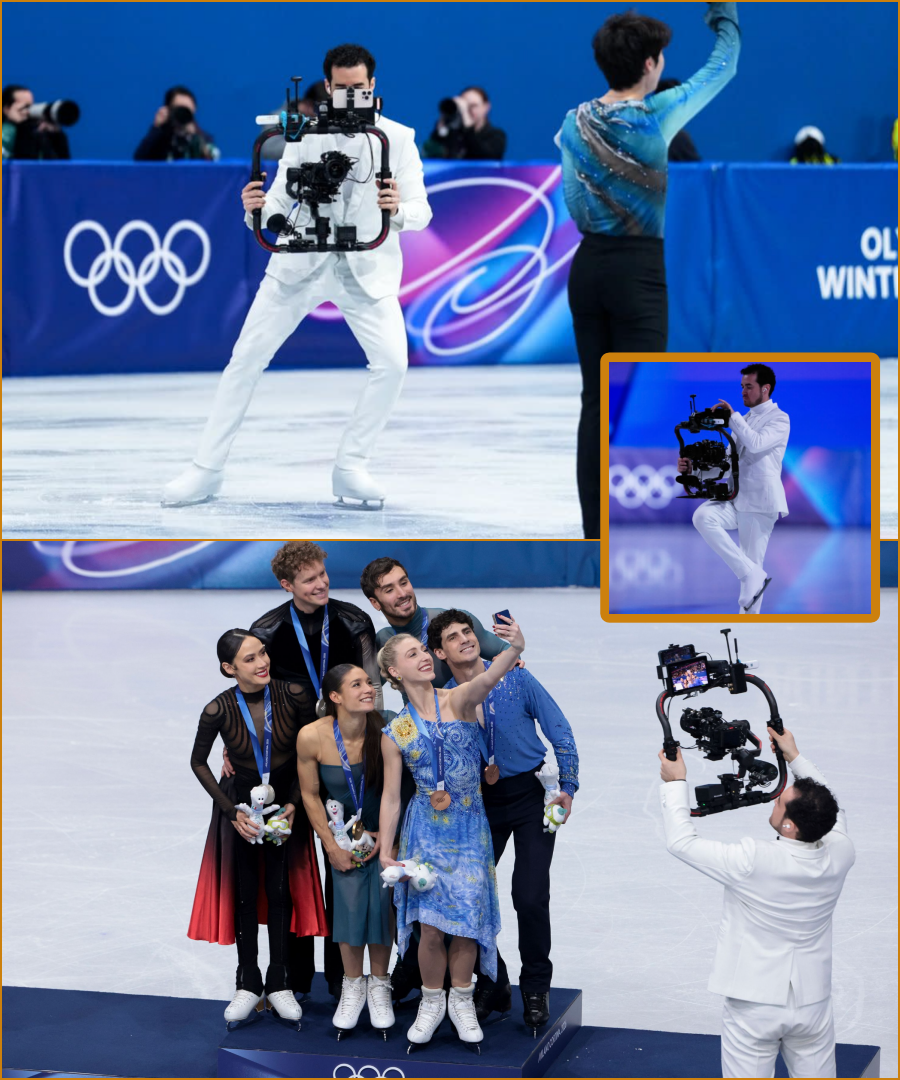 Cowan may have wanted to fade into the background, but the hot camera operator has been going viral after being spotted filming the Olympic ice skating competitions while dressed in an all-white suit and matching ice skates.