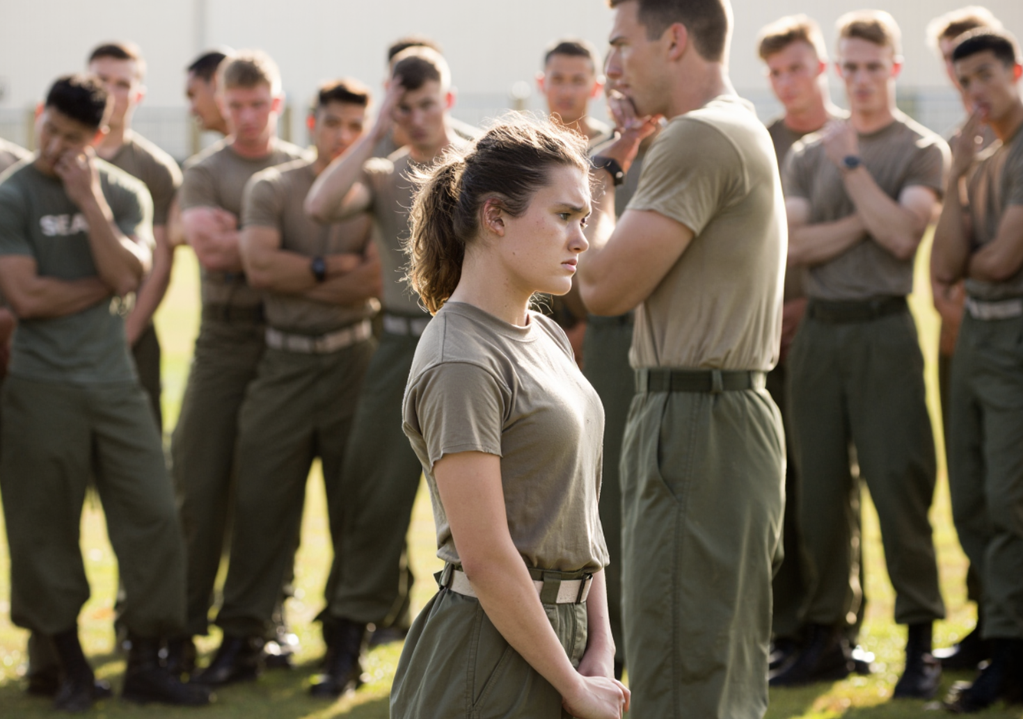 The men relaxed slightly, shifting to parade rest, eyes never leaving her. There was no mockery, no applause—just the silent challenge of the ranks. Cara’s boots echoed with authority as she moved to the center of the hall, a solitary figure dwarfed by 282 trained warriors.