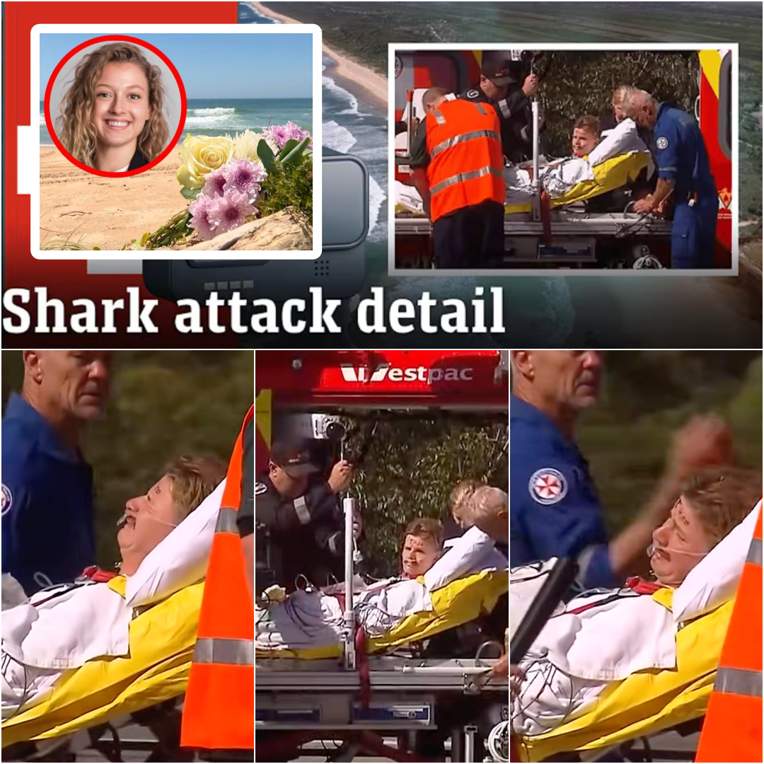 The moment rescuers lifted him from the shoreline, his body was already giving way. Blood soaked through the bandages wrapped hastily around his leg, the wound torn open by the Bull shark’s jaws leaving him pale, trembling, barely conscious. Yet even in that state—caught between awareness and darkness—he could only think of one thing. Not the pain. Not the sirens. Not the shock that rattled through every bone in his body.